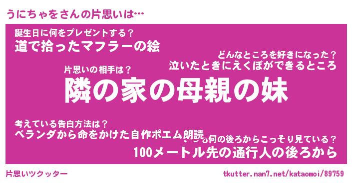 | 恥ずかしいあだ名 | 『プリティーうにちゃを』『うにっちょ』 |