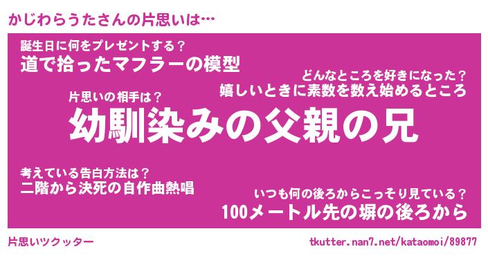 | 男性向けラノベタイトル風あだ名 | 『かじわらうたの憂鬱』 |