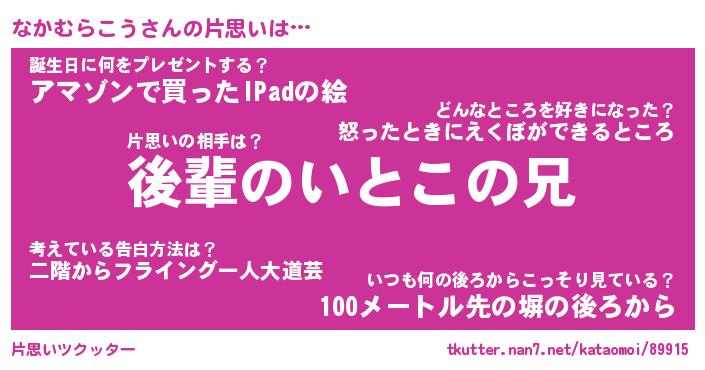 | ヒーロー風カッコイイあだ名 | 『スーパーナカムラコウ』『幻影騎士ナカ』 |