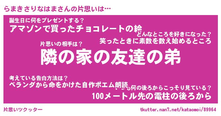 | 男性向けラノベタイトル風あだ名 | 『らまきさりなはまの憂鬱』 |
