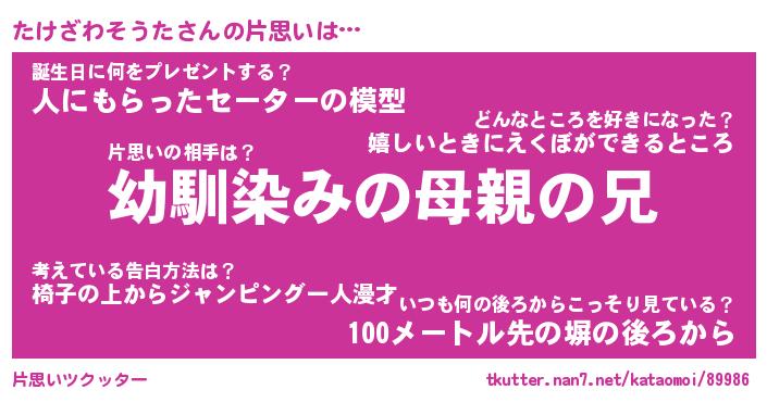 | ヘコむあだ名 | 『たけにー』『酢こんぶ』 |