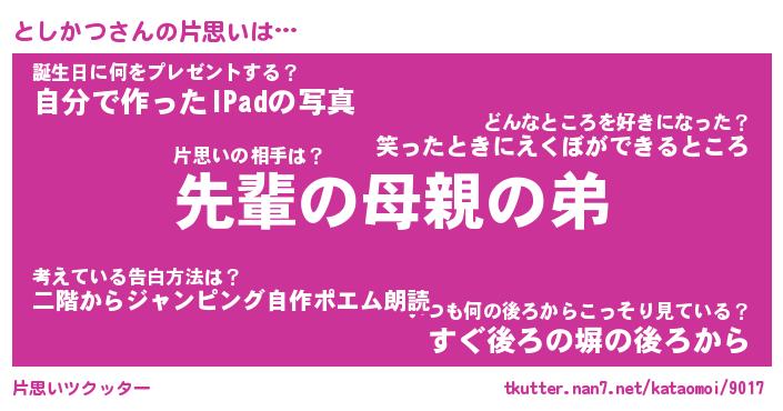 | ヘコむあだ名 | 『としにー』『つくし』『とし太郎』 |