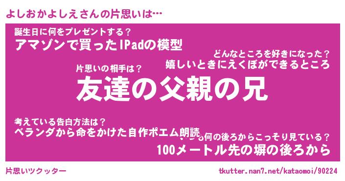 | 胡散臭い通販商品みたいなあだ名 | 『億万長者になれるブレスレット…その名も「よしおかよしえ」』 |