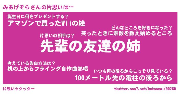 | 胡散臭い通販商品みたいなあだ名 | 『モテモテ間違いなし霊験あらたかなお札…その名も「みあげそら」』 |
