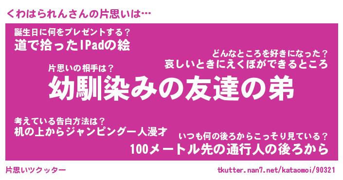 | 男性向けラノベタイトル風あだ名 | 『くわはられんの憂鬱』 |