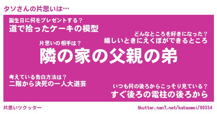 | 2回繰り返すあだ名 | 『タソタソ』『タタソソ』『ぬらぬら』 |