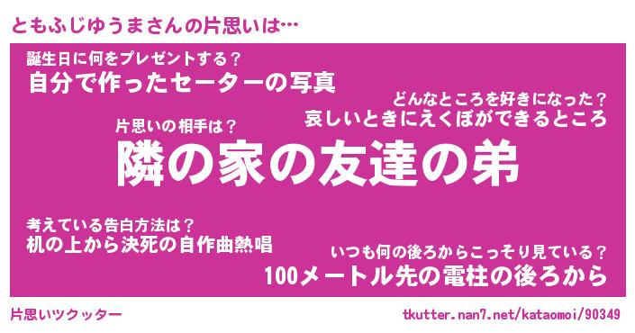 | 男性向けラノベタイトル風あだ名 | 『ともふじゆうまの憂鬱』 |