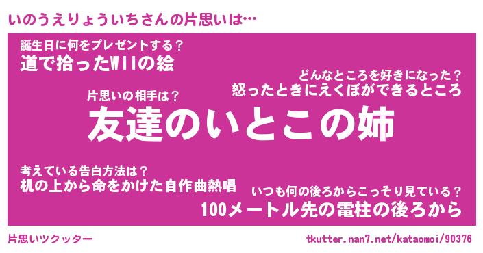 | 胡散臭い通販商品みたいなあだ名 | 『億万長者になれる水晶球…その名も「いのうえりょういち」』 |
