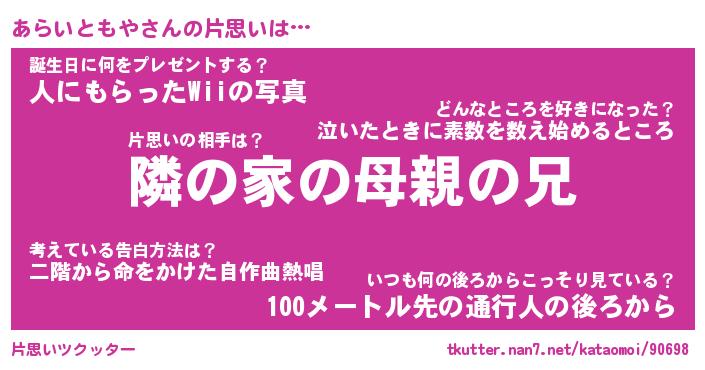 | 胡散臭い通販商品みたいなあだ名 | 『必ず成功するブレスレット…その名も「あらいともや」』 |