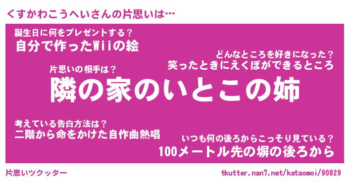 | ヘコむあだ名 | 『くすもー』『牛乳』『くすっぺ』 |