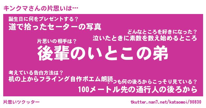| 意味不明あだ名 | 『ペロリンキンクマ』『永久保存キンクマ』 |
