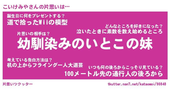 | ファンタジー風あだ名 | 『コイフェル』『エターナルコイケミヤー』 |