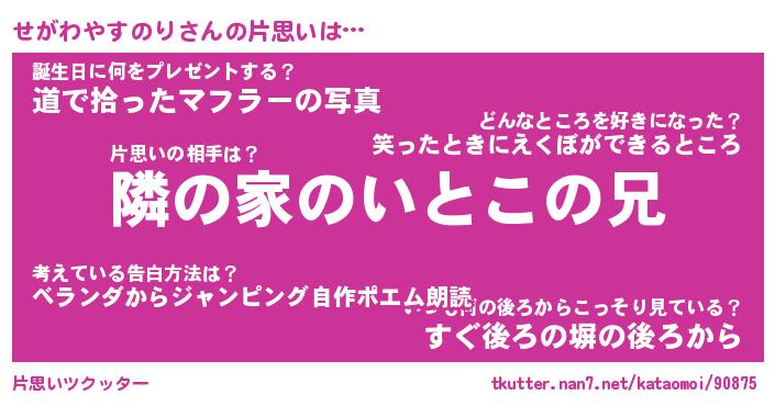 | ヘコむあだ名 | 『せがもー』『酢こんぶ』『せが太郎』 |