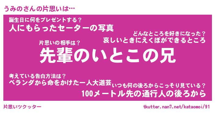 | ファンタジー風あだ名 | 『ウミフェル』『エターナルウミノー』 |