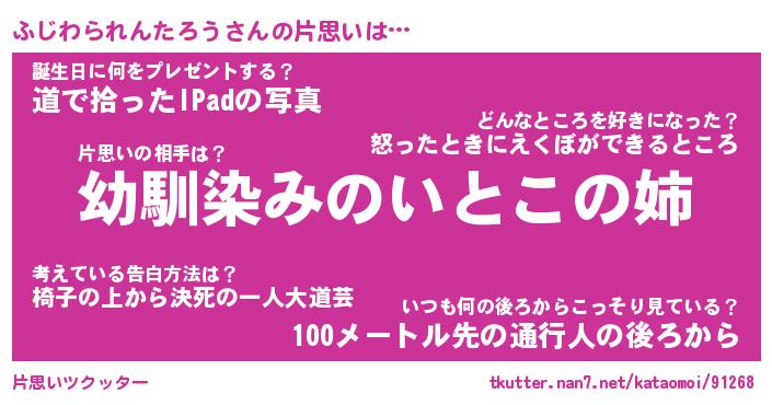 | 胡散臭い通販商品みたいなあだ名 | 『必ず成功する水晶球…その名も「ふじわられんたろう」』 |