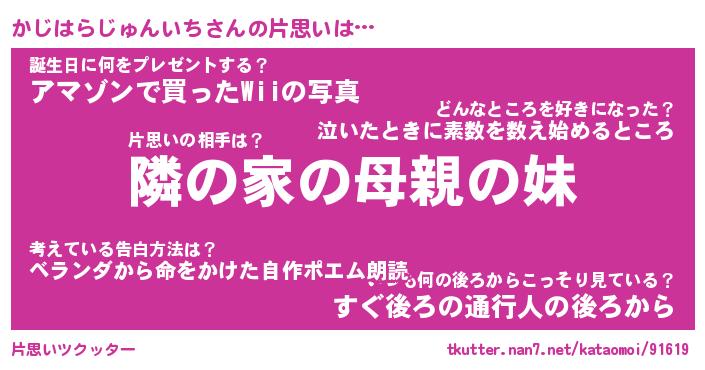 | 男性向けラノベタイトル風あだ名 | 『かじはらじゅんいちの憂鬱』 |