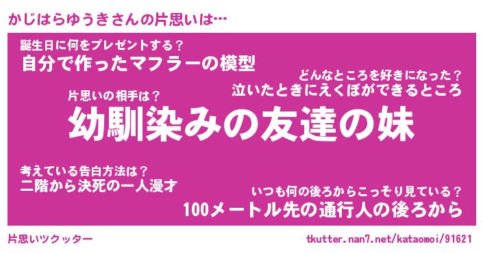 | 胡散臭い通販商品みたいなあだ名 | 『必ず成功する霊験あらたかなお札…その名も「かじはらゆうき」』 |