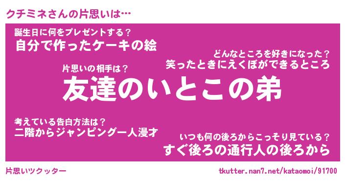 | 2回繰り返すあだ名 | 『クチクチ』『ククチチ』『ねちねち』 |