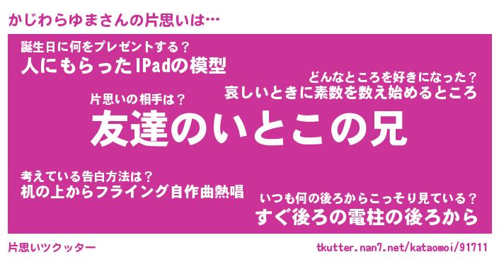 | 胡散臭い通販商品みたいなあだ名 | 『億万長者になれる水晶球…その名も「かじわらゆま」』 |