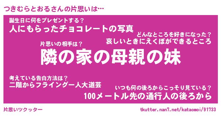 | 男性向けラノベタイトル風あだ名 | 『つきむらとおるの憂鬱』 |
