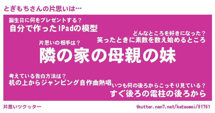 | ファンタジー風あだ名 | 『トギフェル』『エターナルトギモチー』 |