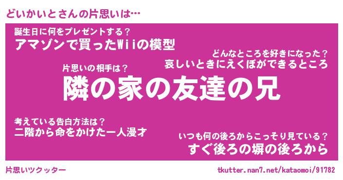 | 胡散臭い通販商品みたいなあだ名 | 『必ず成功する霊験あらたかなお札…その名も「どいかいと」』 |