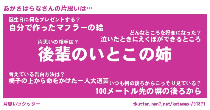 | ツイッター | あかさはらなさんのツイッターID『dendenmushi_kun』 |