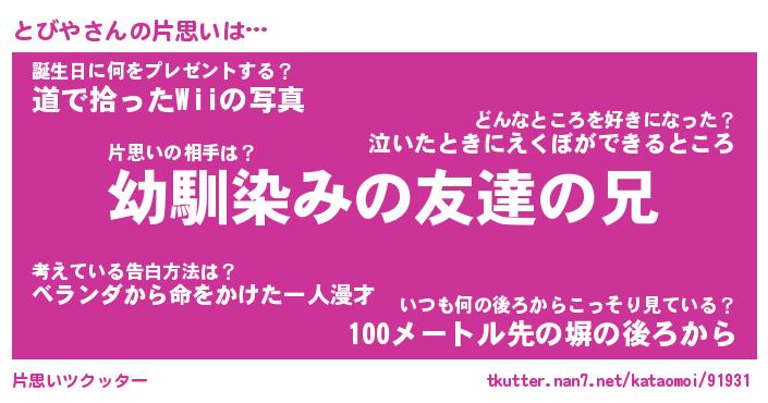 | ヘコむあだ名 | 『とびっふぃ~』『豆乳』『とびお』 |