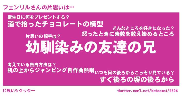 | ファンタジー風あだ名 | 『フェフェル』『エターナルフェンリルー』 |