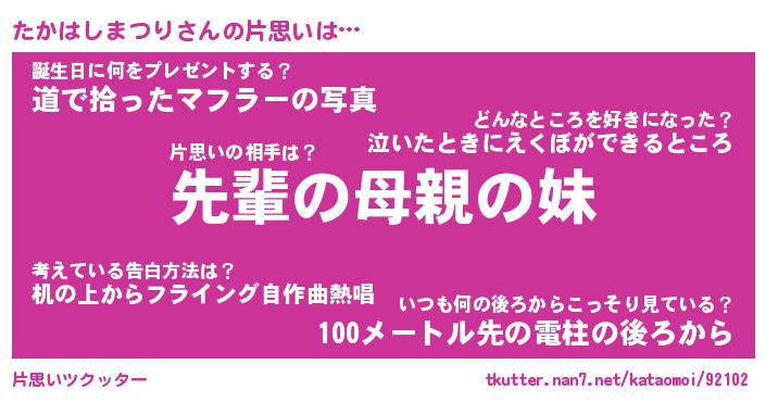 | 男性向けラノベタイトル風あだ名 | 『たかはしまつりの憂鬱』 |