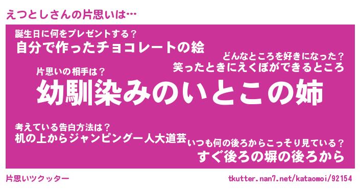 | ヘコむあだ名 | 『えつにゅー』『つくし』『えつ太郎』 |