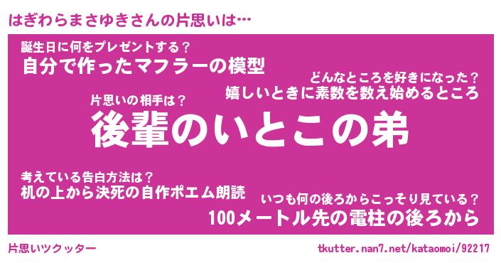 | ヘコむあだ名 | 『はぎにゅー』『牛乳』『はぎお』 |