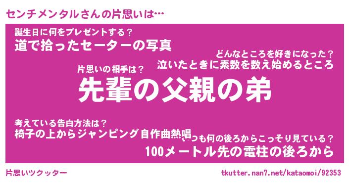 | 胡散臭い通販商品みたいなあだ名 | 『モテモテ間違いなしブレスレット…その名も「センチメンタル」』 |