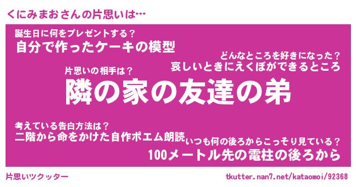 | ヘコむあだ名 | 『くにっふぃ~』『牛乳』『くにお』 |