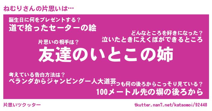 | ヘコむあだ名 | 『ねむにゅー』『牛乳』『ねむっ子』 |