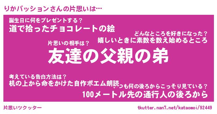 | 胡散臭い通販商品みたいなあだ名 | 『億万長者になれる水晶球…その名も「りかパッション」』 |