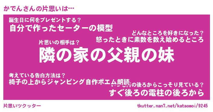 | 男性向けラノベタイトル風あだ名 | 『かでんの憂鬱』 |