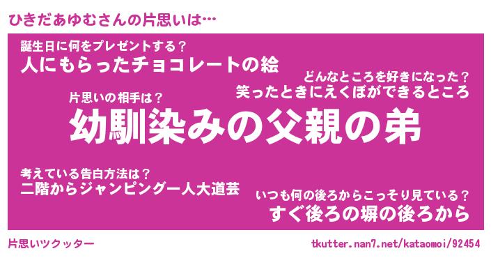 | 男性向けラノベタイトル風あだ名 | 『ひきだあゆむの憂鬱』 |