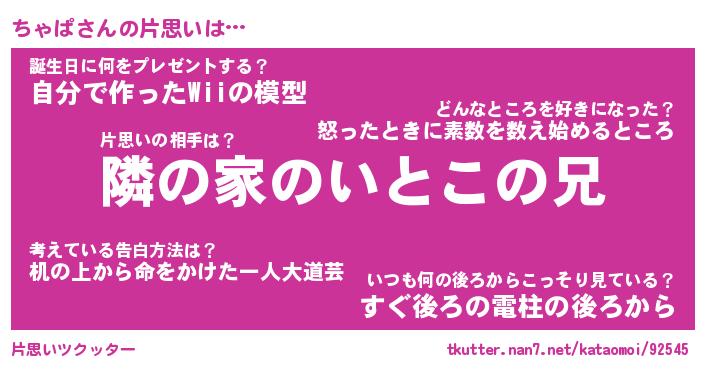 | ヘコむあだ名 | 『ちゃにゅー』『豆乳』『ちゃっぺ』 |