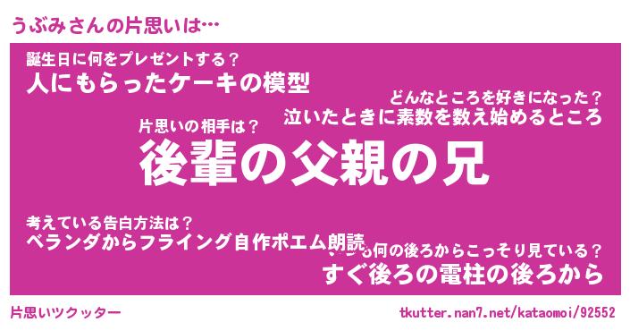 | 胡散臭い通販商品みたいなあだ名 | 『億万長者になれる水晶球…その名も「うぶみ」』 |