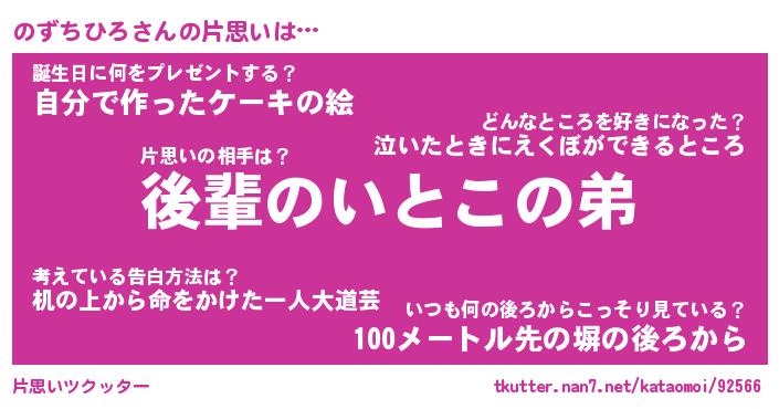 | ヘコむあだ名 | 『のずもー』『豆乳』『のずっちょ』 |