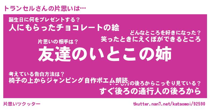 | ファンタジー風あだ名 | 『トラフェル』『エターナルトランセルー』 |