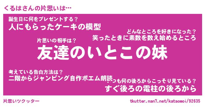 | ヘコむあだ名 | 『くるもー』『酢こんぶ』『くるっぺ』 |