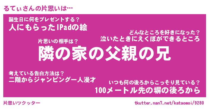 | 胡散臭い通販商品みたいなあだ名 | 『必ず成功するブレスレット…その名も「るてぃ」』 |