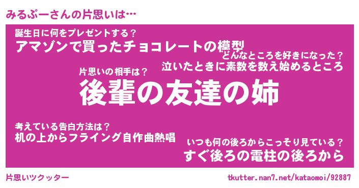 | ポケモン風あだ名 | 『ミルチュウ』『ミルプダネ』 |