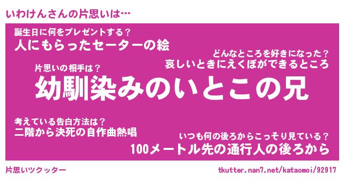| 男性向けラノベタイトル風あだ名 | 『いわけんの憂鬱』 |