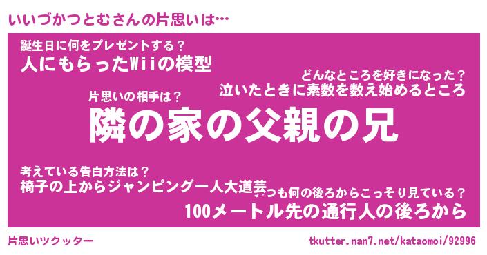 | 男性向けラノベタイトル風あだ名 | 『いいづかつとむの憂鬱』 |