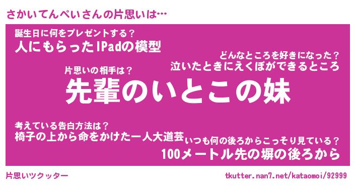 | 胡散臭い通販商品みたいなあだ名 | 『モテモテ間違いなし水晶球…その名も「さかいてんぺい」』 |