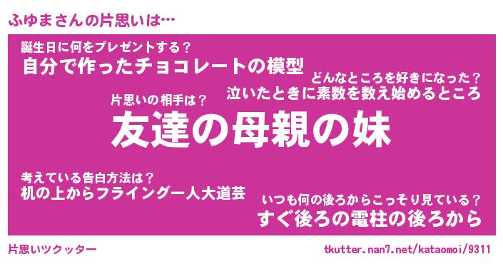 | 胡散臭い通販商品みたいなあだ名 | 『億万長者になれるブレスレット…その名も「ふゆま」』 |