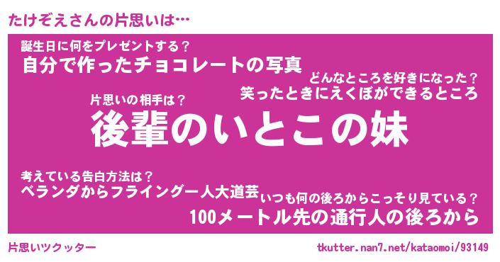 | 意味不明あだ名 | 『ペロリンたけぞえ』『永久保存たけぞえ』 |